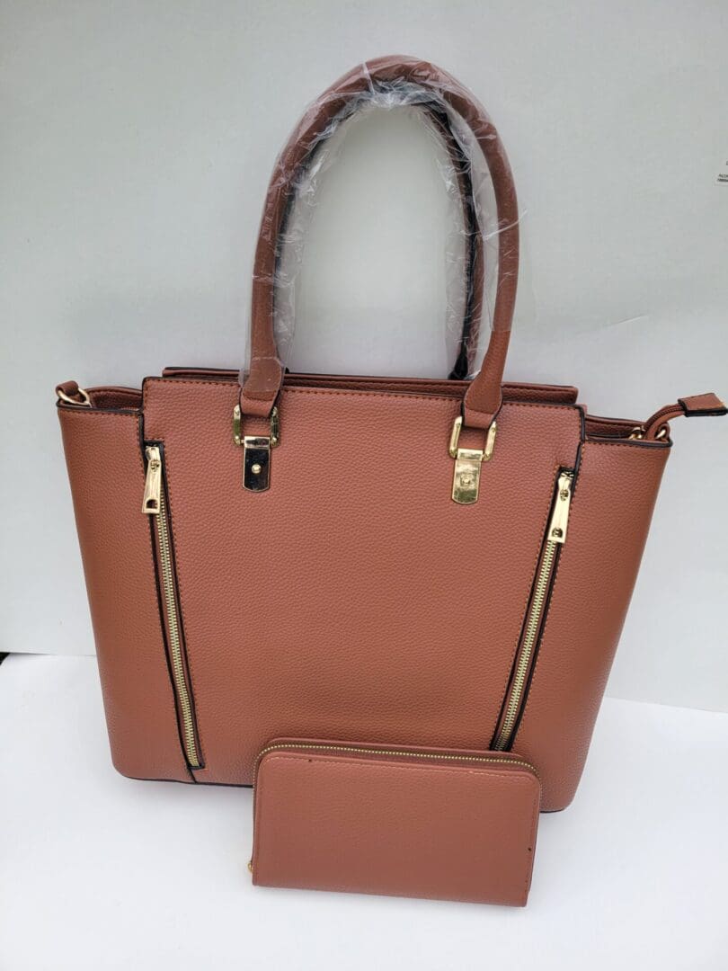 handbag with zipped sides wallet, top handle, and adjustable crossbody strap